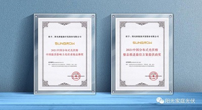 11月29日,由共享能源主辦,山東省太陽(yáng)能行業(yè)協(xié)會(huì)、河北省光伏新能源商會(huì)、河南省新能源產(chǎn)業(yè)發(fā)展聯(lián)盟、江蘇省可再生能源行業(yè)協(xié)會(huì)、浙江省太陽(yáng)能光伏行業(yè)協(xié)會(huì)指導(dǎo)的“第三屆中國(guó)分布式光伏創(chuàng)新發(fā)展論壇暨年度頒獎(jiǎng)大會(huì)”在山東臨沂隆重召開(kāi),憑借雄厚的綜合實(shí)力和優(yōu)異的市場(chǎng)口碑,陽(yáng)光家庭光伏榮獲“中國(guó)最具影響力光伏系統(tǒng)品牌”和“整縣推進(jìn)最佳方案提供商”兩項(xiàng)重量級(jí)殊榮。